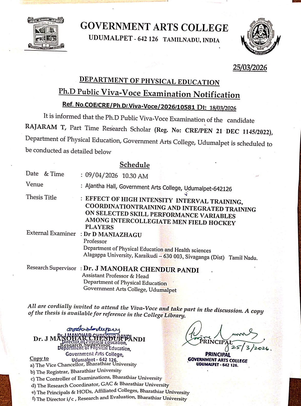 All are Cordially invited ot attend the viva voce and take part in the discussion.